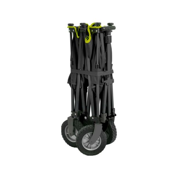 Zložljiv ročni voziček z robustnim, prašno lakiranim jeklenim okvirjem in prostorno transportno površino, prekrito s trpežno poliestrsko tkanino. Vsestranska uporaba v kampu, na plaži, pri nakupovanju in za najrazličnejše prostočasne aktivnosti. Montaža ni potrebna. V obsegu dobave je vključena praktična transportna torba.