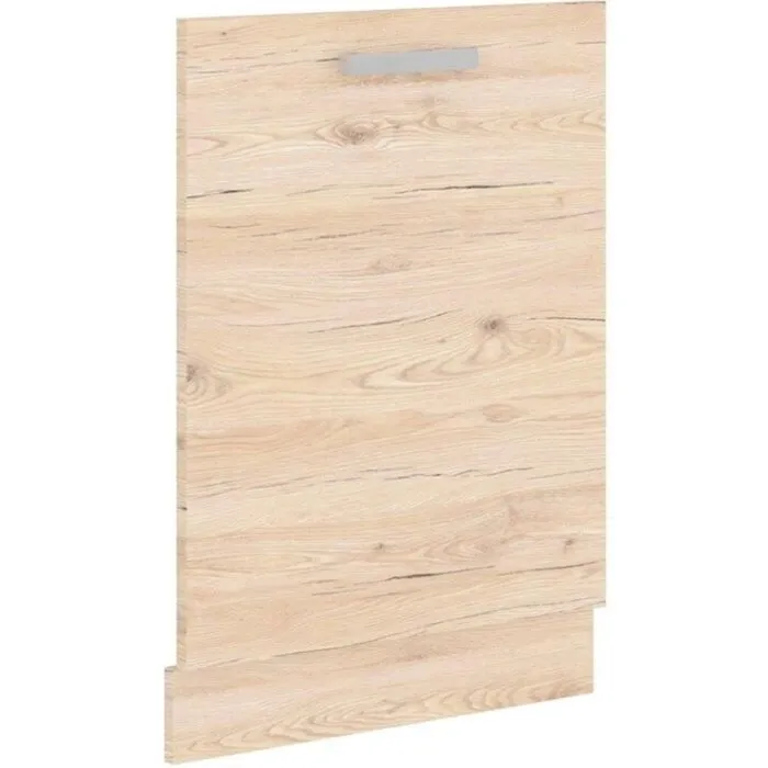 Vrata za pomivalni stroj SANREMO za notranjo armaturo so narejena iz laminirane plošče, debeline 16 mm. Robovi so iz melamina. Fronta je v barvi hrasta, ročaj pa v sivi barvi. Vrata segajo v višini do pulta in ustrezajo pomivalnim strojem z notranjo armaturo.