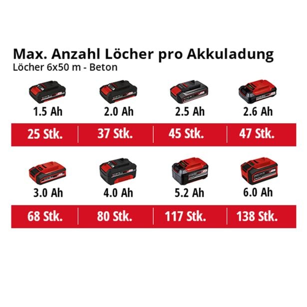 Einhell akumulatorsko vrtalno kladivo TE-HD 18/12 Li-Solo Power X-Change spada v prilagodljivo družino Power X-Change, v kateri je mogoče vsako baterijo PXC kombinirati z vsakim sistemskim orodjem. Rotacijsko kladivo je opremljeno z zmogljivim motorjem in robustnim kovinskim orodjem ter pnevmatskim kladivom in hitrostno elektroniko za delo, usmerjeno v material in uporabo. Univerzalno držalo za orodje SDS-plus s polavtomatsko funkcijo in LED lučka za osvetlitev delovnega območja zagotavljata podporo med delom. Ročaj z mehkim oprijemom zagotavlja trden oprijem. Dostava, vključno z magnetnim nastavkom za nastavke, brez baterije in polnilnika.