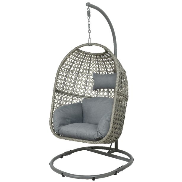 Viseči stol ali vrtni jajček s pleteno košaro in udobnimi blazinami. Košara v dimenziji (dolžina x širina x višina) 122 x 93 x 63 cm. Velikost izdelka 95X195 cm. Velikost blazine 48x25x15 cm.Maksimalna nosilnost 120 kg.