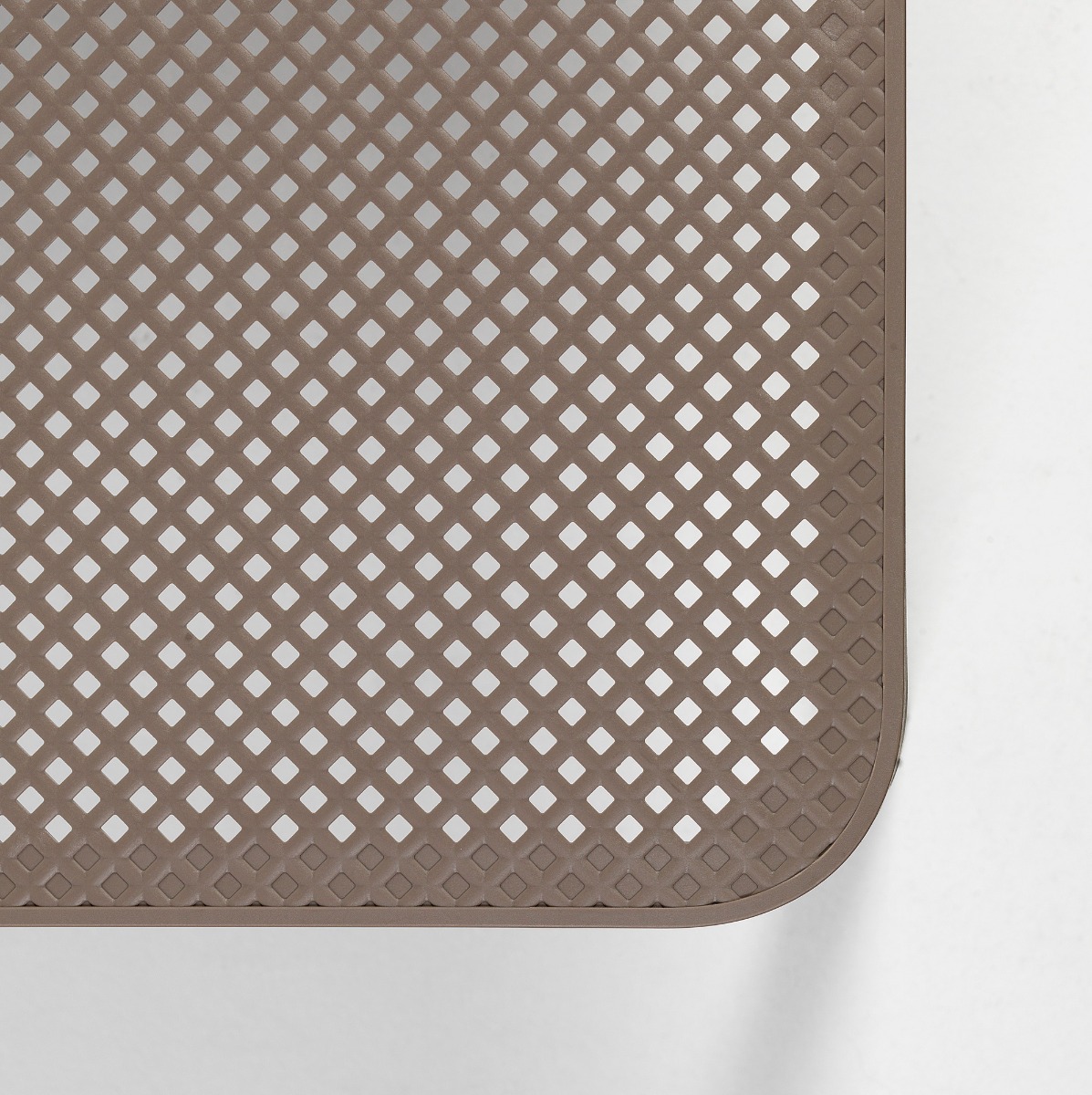 Vrtna klubska miza NET 100 v Tortora barvi. Elegantna, kvalitetna in trpežna miza italijanskega proizvajalca vrtnega pohištva NARDI. Vrtno pohištvo NARDI kombinirajte z mizami NET po vaši izbiri.