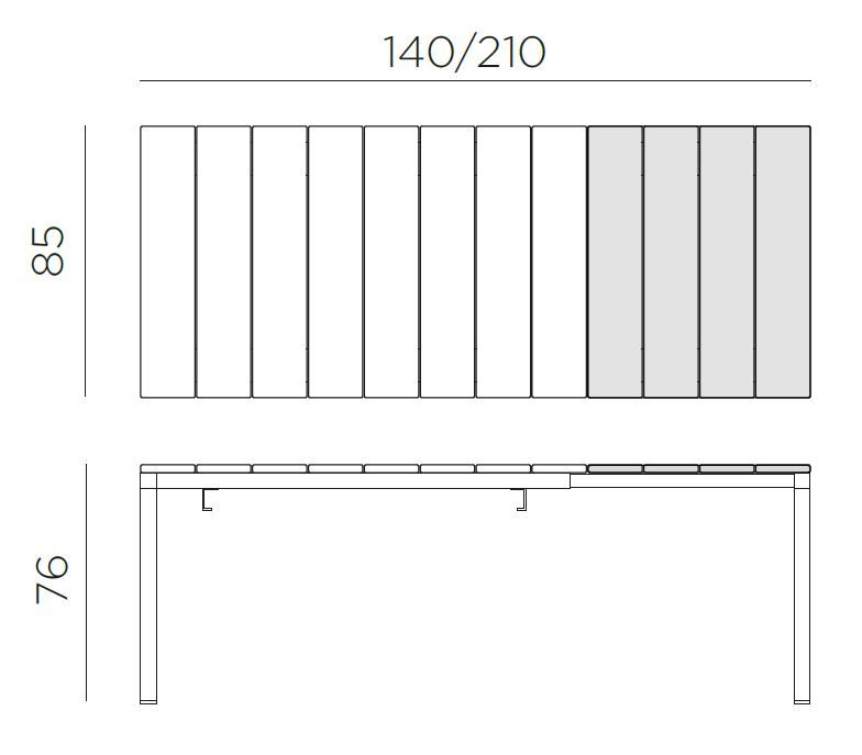 Moderna raztegljiva miza priznanega Italijanskega proizvajalca NARDI je na voljo v moderni antracit barvi. Je miza z možno osebnostjo in arhitekturnimi detajli. Plošča mize je v videzu lesenih letev izdelanih iz enakomerno obarvane polipropilenske smole, kateri so dodani UV dodatki, za odlično UV obstojnost. Okvir in noge mize so izdelane iz prevlečenega aluminija. Površina mize ima mat zaključek in je prijetna na dotik. Miza ima izredno dovršen razširitveni mehanizem, kateri omogoča, da so noge mize vedno na koncu mize. To mizi daje izredno stabilnost tudi ko je le-ta raztegnjena. Hkrati pa se s takšnim načinom razširitve izognemo težavam pri postavitvi stolov in ovirano sedenje. Miza ima zasnovan popoln sistem pritrjevanja svojih podaljškov. Miza Rio je izredno kvalitetna, odporna na vremenske vplive ter zelo stabilna in enostavna za uporabo.