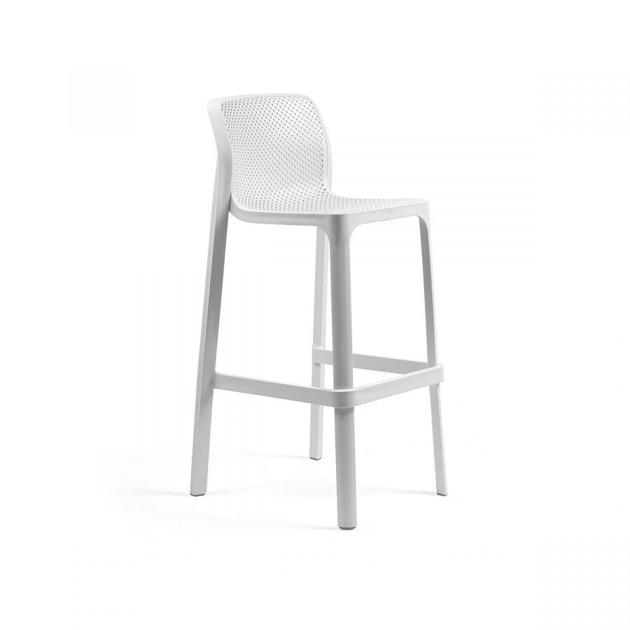 Vrtni barski stol NET proizvajalca NARDI. Kvaliteten vrtni stol iz steklenih vlaken, okrašena z radialnim vzorcem kvadratnih perforacij po celotni površini sedeža. Net stol ima mat površino in je prijeten na otip.