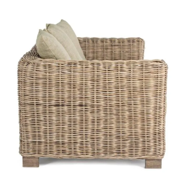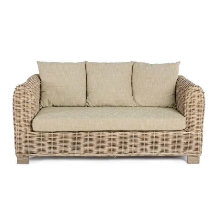Vrtni dvosed FORTALEZA je narejen iz ratana in lesenega okvirja. Blazine imajo snemljivo prevleko (55% bombaž, 45% poliester), kar omogoča lažje vzdrževanje. Trosed je primeren za notranje prostore.