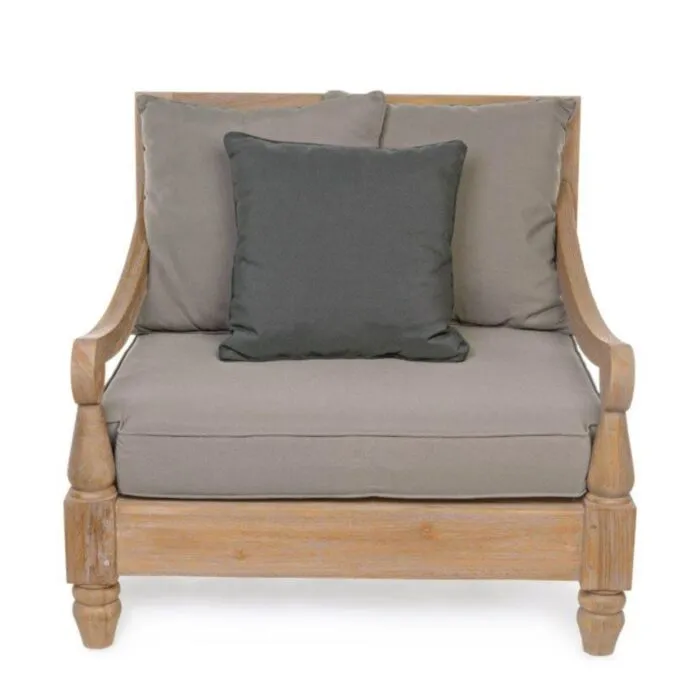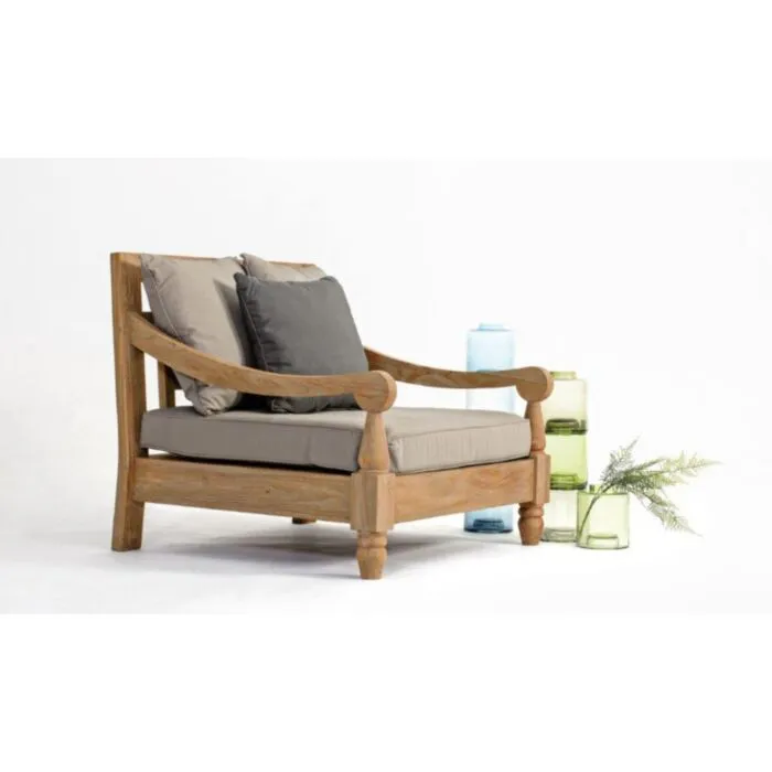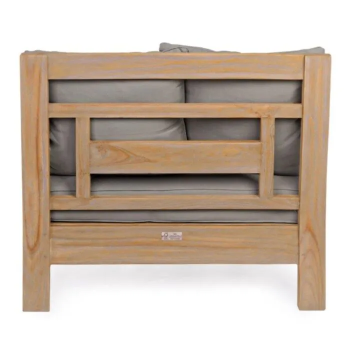 Vrtni fotelj BALI je narejen iz tikovega lesa. Blazina z odstranljivo prevleko z olefinsko tkanino je narejena iz polipropilena.