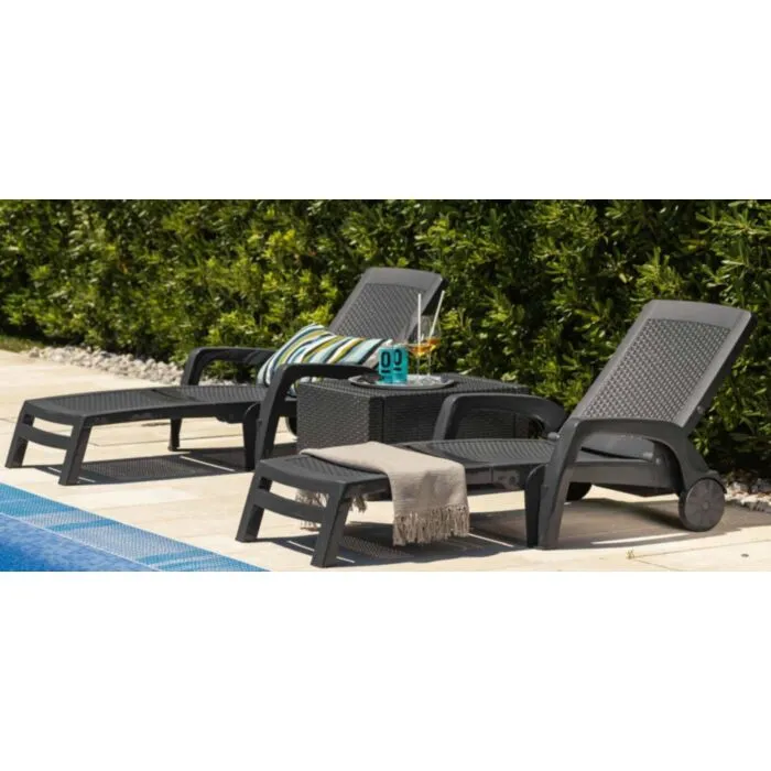 Enostaven in praktičen vrtni ležalnik MIAMI je narejen iz plastične mase. Dobavljiv je v antracid barvi. Ležalnik je zložljiv, v naslonu ima predal za spravilo predmetov in kolesa za lažje premikanje. Ležalnik ima več pozicij nastavitve vzglavnika in tudi opcijo ležišča. Narejeno v EU.