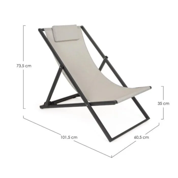 Vrtni ležalnik TAYLOR siva/črna ima aluminjasto konstrukcijo, prašno barvan (poliester). Sedež in hrbet sta iz tekstilena, okovje je iz jekla. Ima tri različne položaje za vzglavje.