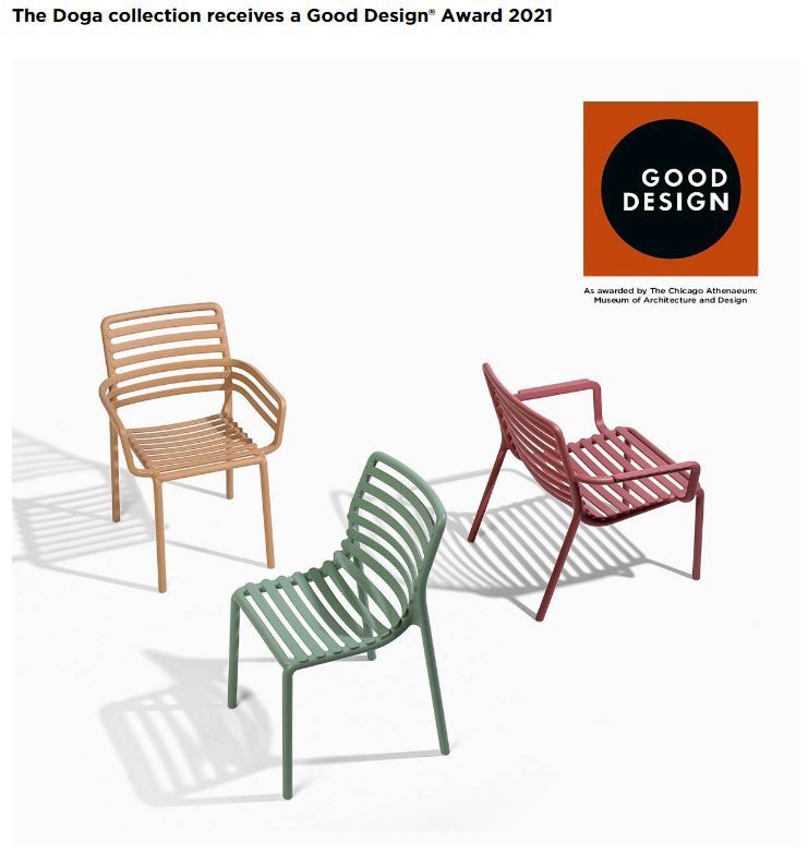 Priročen, nakladalen vrtni stol Doga v moderni agave zeleni barvi, italijanskega proizvajalca vrtnega pohištva NARDI. Stol je izdelan iz enakomerno obarvane polipropilenske smole iz steklenih vlaken kateri so dodani dodatki za UV obstojnost. Površina stola ima mat zaključek in je prijetna na otip. Noge stola so opremljene s proti drsnimi čepi, kateri stolu dajejo dodatno stabilnost. Stol je izredno kvalitetne izdelave. Materiale uporabljene pri izdelavi stola Doga je mogoče reciklirati. Sproščujoč stol za zunanjo uporabo vključuje preplet odprtih in zaprtih prostorov, ki jih loči zaporedje vodoravnih letvic. Vse dobre funkcionalnosti združuje stol DOGA vrhunskega italijanskega proizvajalca vrtnega pohištva NARDI.