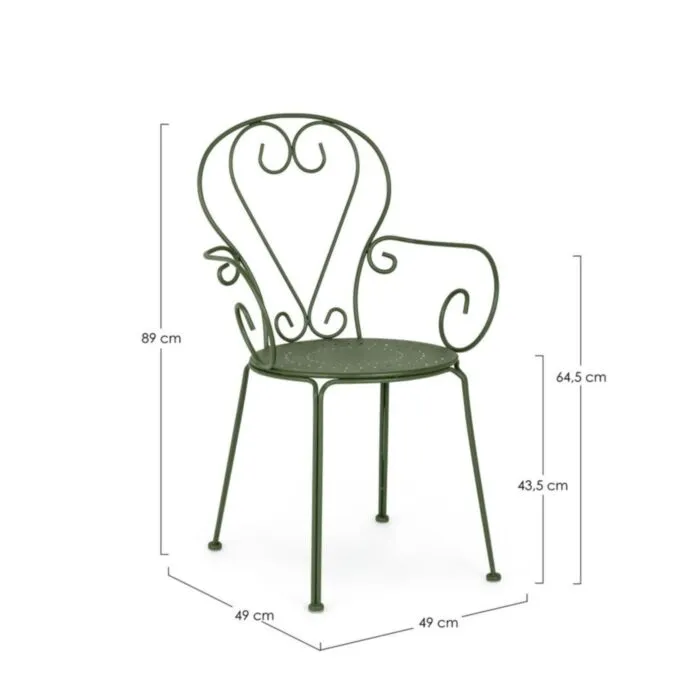 Vrtni stol ETIENNE zelena je narejen iz jekla in ima mat zaključek.