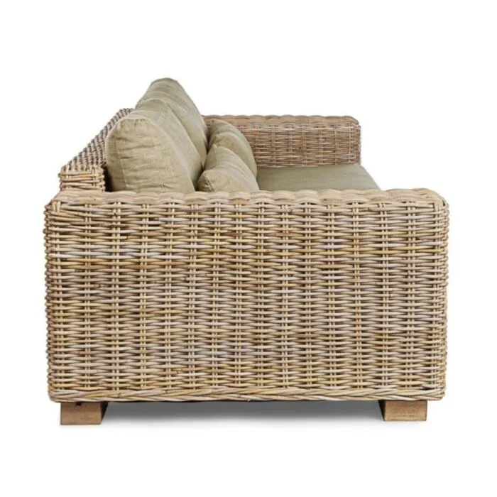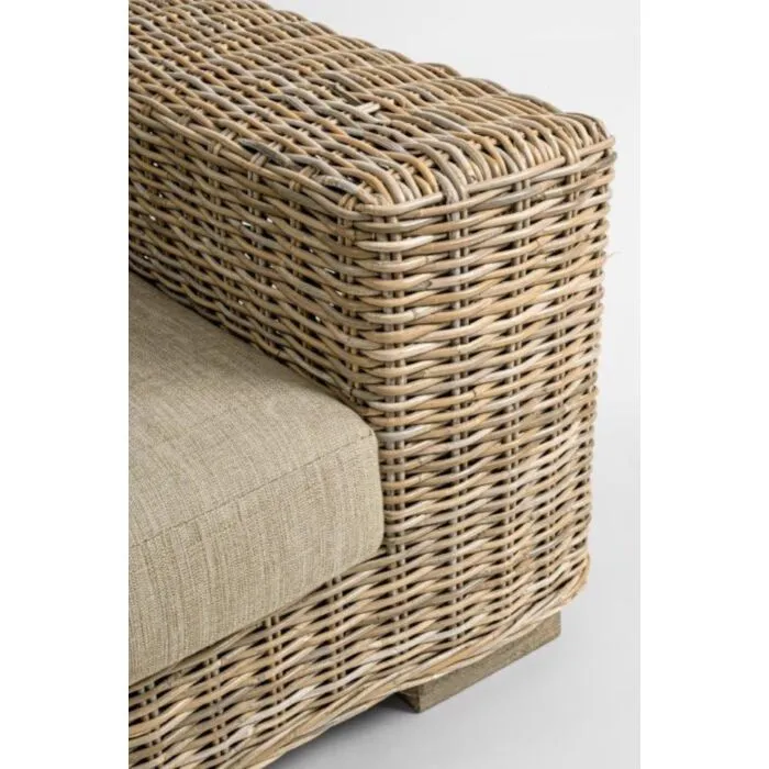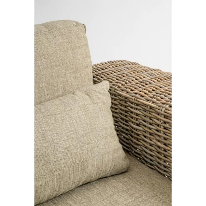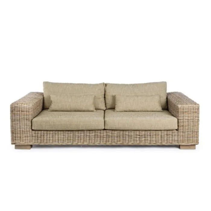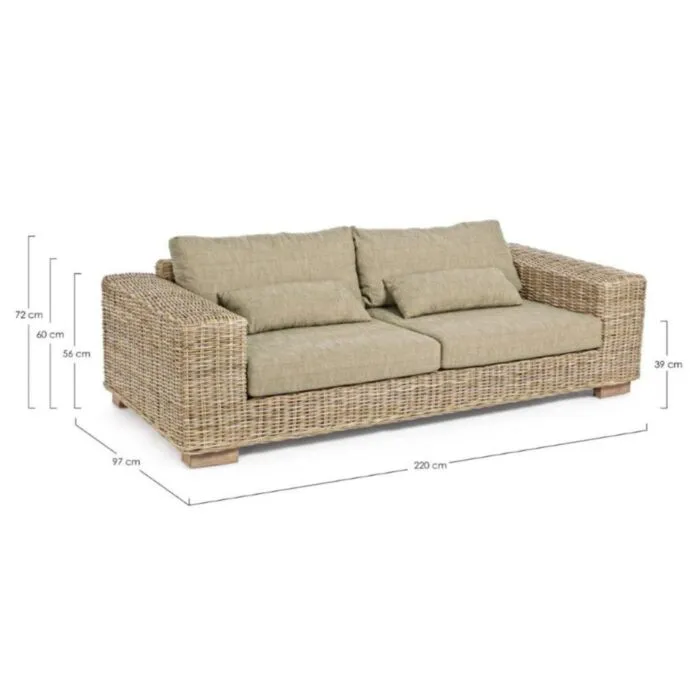 Vrtni trosed LEANDRO  je narejen iz ratana in lesenega okvirja. Blazine imajo snemljivo prevleko (55% bombaž, 45% poliester), kar omogoča lažje vzdrževanje. Trosed je primeren za notranje prostore.