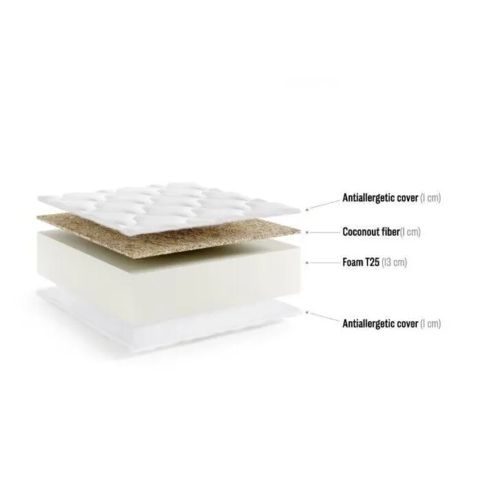 Vzmetnica HASA je dvostransko ležišče iz pene M21, z dvema stranicama trdote in sicer srednje trda ter trda. Obložena je s 13 cm visoko peno na eni strani in 1 cm debelo kokosovo ploščo na drugi strani. Prevleka je pralna.
