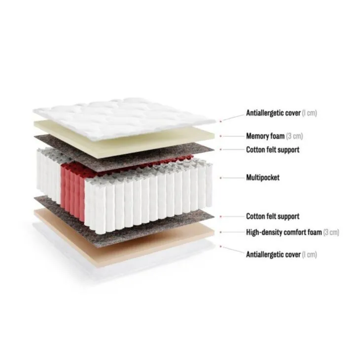 Vzmetnica SLIP je dvostransko ležišče iz pene, srednje trdo, grajeno na vzmeti, ki je na eni strani prekrita s 3 cm debelo termoelastično ploščo, na drugi strani pa s 3 cm visoko fleksibilno peno.Vzmetnica SLIP je enostransko izdelana iz visokoeastične pene, ki jo odlikuje izjemna elastičnost, prožnost ter zračnost. Termoelastična pena pa poskrbi za popolno prileganje obliki telesa in ga enakomerno podpira na vsakem mestu. Ima pralno prevleko.