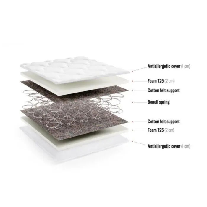 Vzmetnica SUZI je dvostranska srednje trda vzmetnica. Izdelana je iz Bonell vzmeti, ki je obojestransko prekrita z 2 cm debelo peno. Vsebuje pralno prevleko.