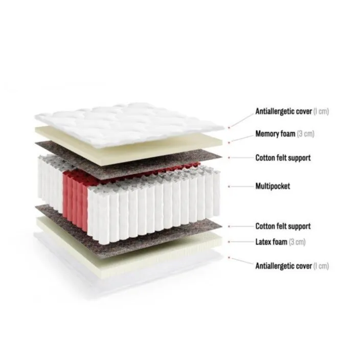 Vzmetnica TRES je dvostransko ležišče iz pene srednje in trdo. Za popolno prileganje obliki telesa skrbi termoelastična pena, ki jo enakomerno podpira na vsakem mestu. Ima pralno  prevleko.