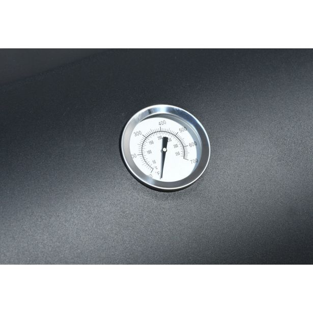 Žar ima poklopni pokrov, ki je na vrhu opremljen tudi s termometrom, tako da boste lahko spremljali temperaturo v notranjosti žara.