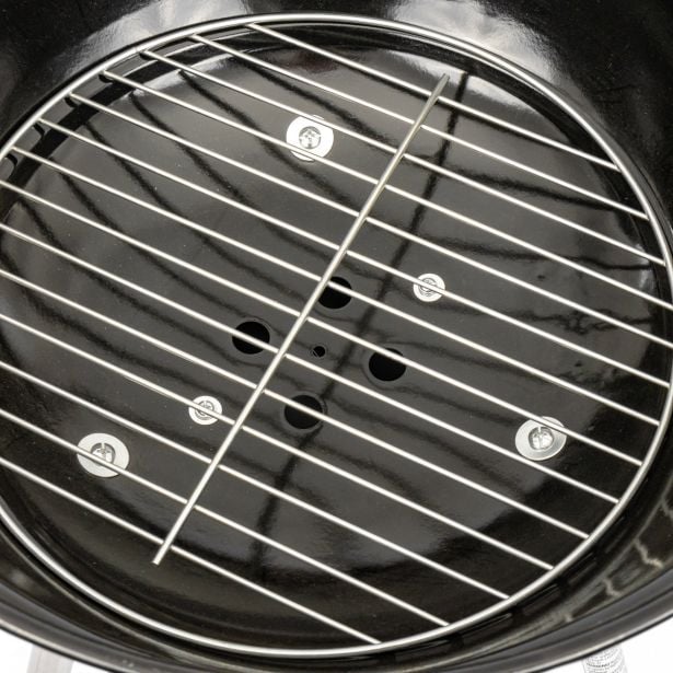 Okrogel žar na oglje s posodo za pepel.Skupna dimenzija: fi 50 x 92cm. Premer rešetke 46 cm.Skupna površina za peko 1661 cm2.