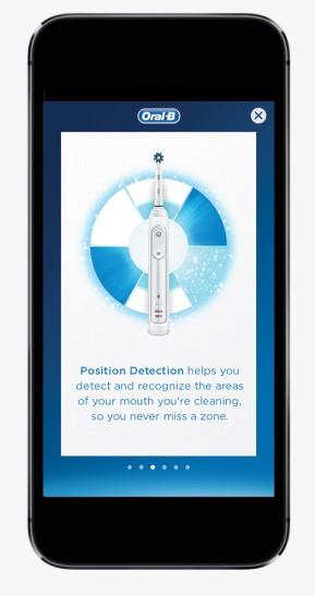 - Preko Bluetooth povezave lahko povežete ščetko z aplikacijo Oral-B za pametne telefone. Na ta način dobite povratne informacije o pravilnosti in temeljitosti ščetkanja v realnem času, vključno s kontrolo priporočenega časa ščetkanja dve minuti.
