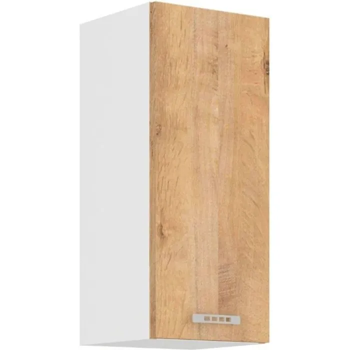 Zgornja omara ARA 30G je sestavljena iz fronte in korpusa iz MDF plošče, debeline 16 mm. Robovi so iz melamina. Ročaji so sivi. Na voljo je v barvi sonome in hrasta. V komentarju dopišete, katero barvno kombinacijo želite.