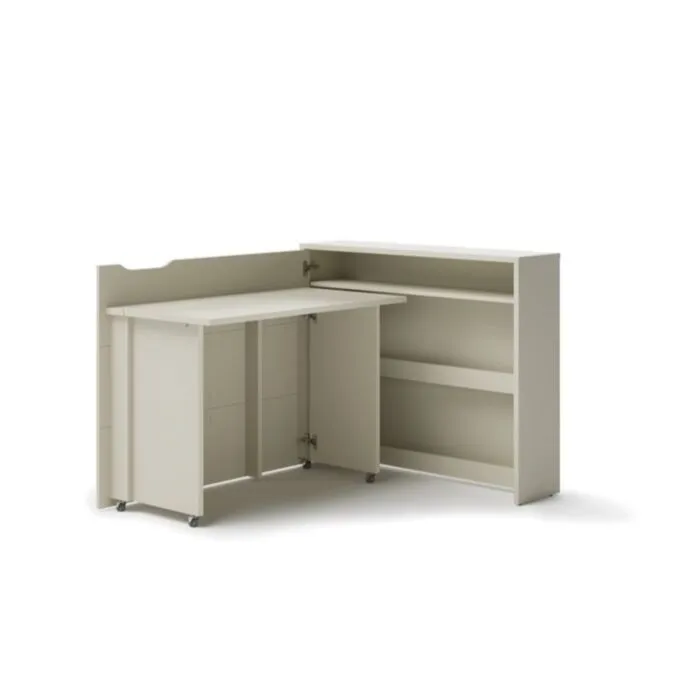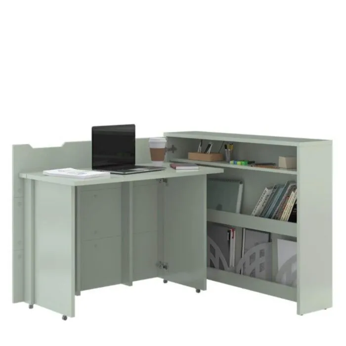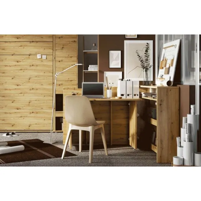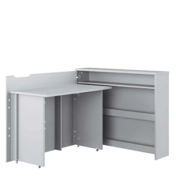 Zložljiva pisalna miza VOKI je narejena iz trpežne laminirane plošče in MDF plošče, zaključene z trpežnim ABS robom. Miza VOKI vam omogoča priročno upravljanje prostora. Delovala bo v otroški in najstniški sobi, delovni sobi, pisarni, majhni garsonjeri. Ker ima spodaj pod podstavki nameščene koleščke, se miza enostavna ter hitro zapre. V zloženem stanju je pisalna miza videti kot navadna komoda, ko se pa raztegne postane priporočna pisalna miza.