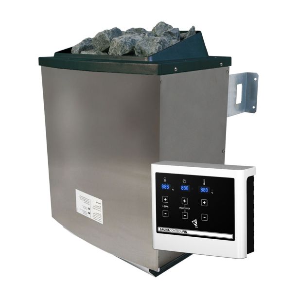 9 kW peč za savno z zunanjim upravljanjem omogoča pravo finsko savno – intenzivna toplota in suh zrak zagotavljata pomirjujočo sprostitev. Prostorsko varčna stenska peč ima zunanje ohišje iz visokokakovostnega nerjavečega jekla in notranje ohišje iz vroče aluminiziranega jekla, ki zmanjšuje moteče pokanje.