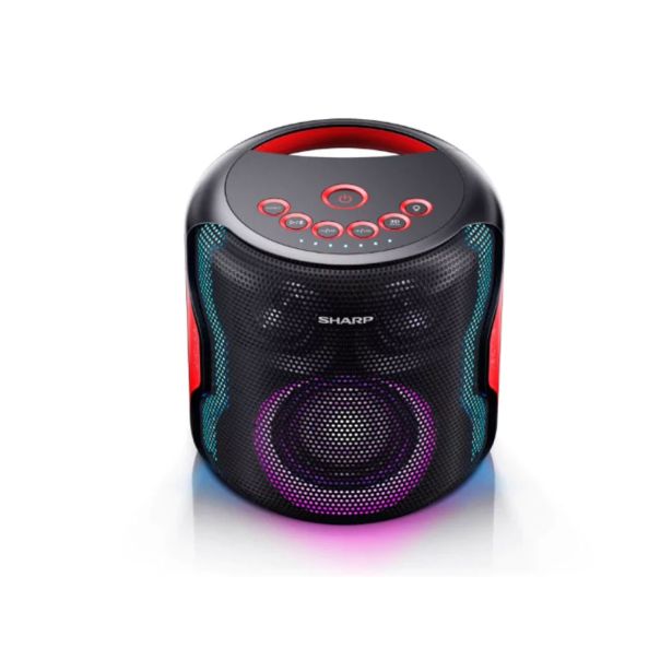 Sharp PS-921 BK je zmogljiv prenosni Bluetooth zvočnik z močjo 130 W, ki zagotavlja bogat zvok, globoke base in dolgotrajno delovanje. Z zaščito IP54 je idealen za uporabo na prostem, kjer bo s svojo RGB osvetlitvijo poskrbel za pravo zabavo.